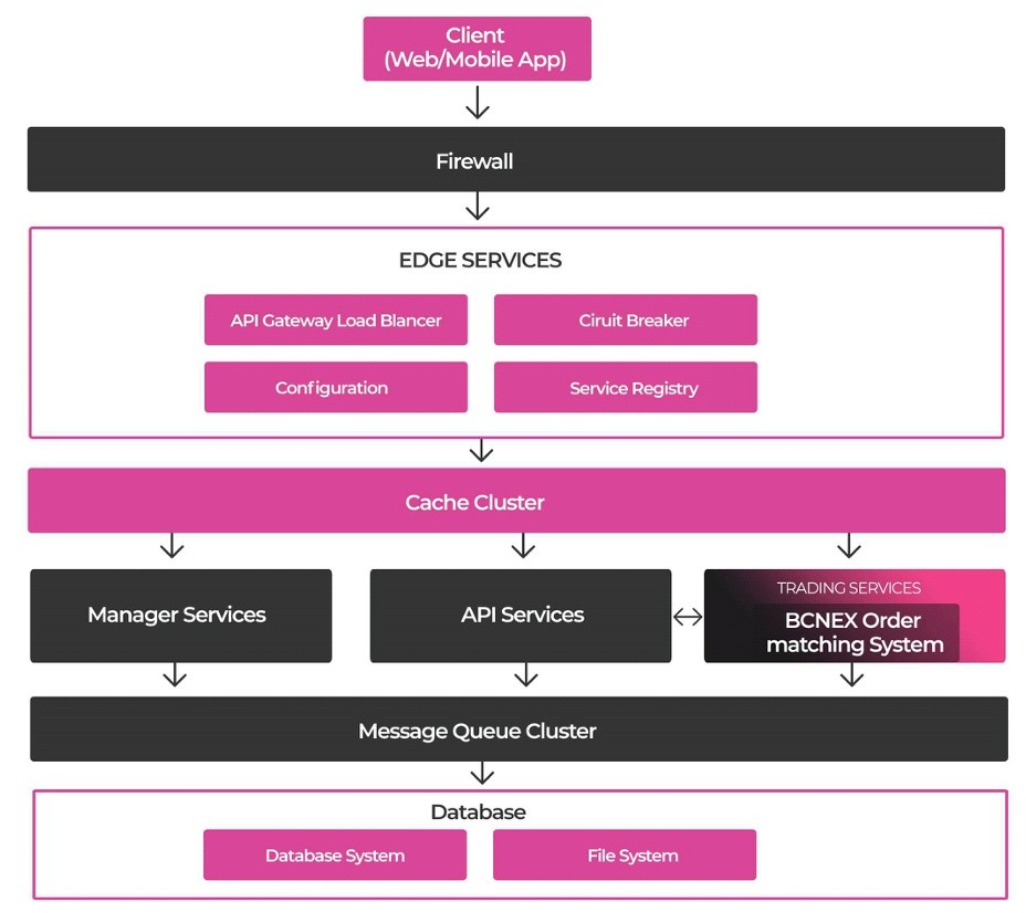 Bcnex has been effectively overcome arsitektur using arsitektur micro service to ensure high skalabilitas by adding server system need to handle thing that when a large number of transactions and traffic. Since a pleasant user experience is one of the purposes of the Bcnex and her team, this platform will always defend a stable service with working hours to 99, 9%