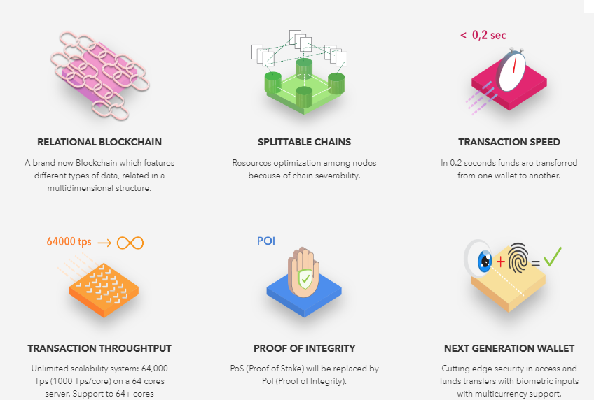 Proof of Integrity can be said to be a major highlight in this project. We can take it to represent the project. It's a solution to replace Proof of Work and Proof of Stake in its various shapes, a protocol that performs cryptographic validation by checking the authenticity of the software that resolves every persistence of the transaction. This procedure requires a remarkably lower computing power, preventing wastes of computing power typical of other block validation solutions, providing structural security based neither on statistical models nor Byzantine Consensus models, which is quite vulnerable in small clusters.