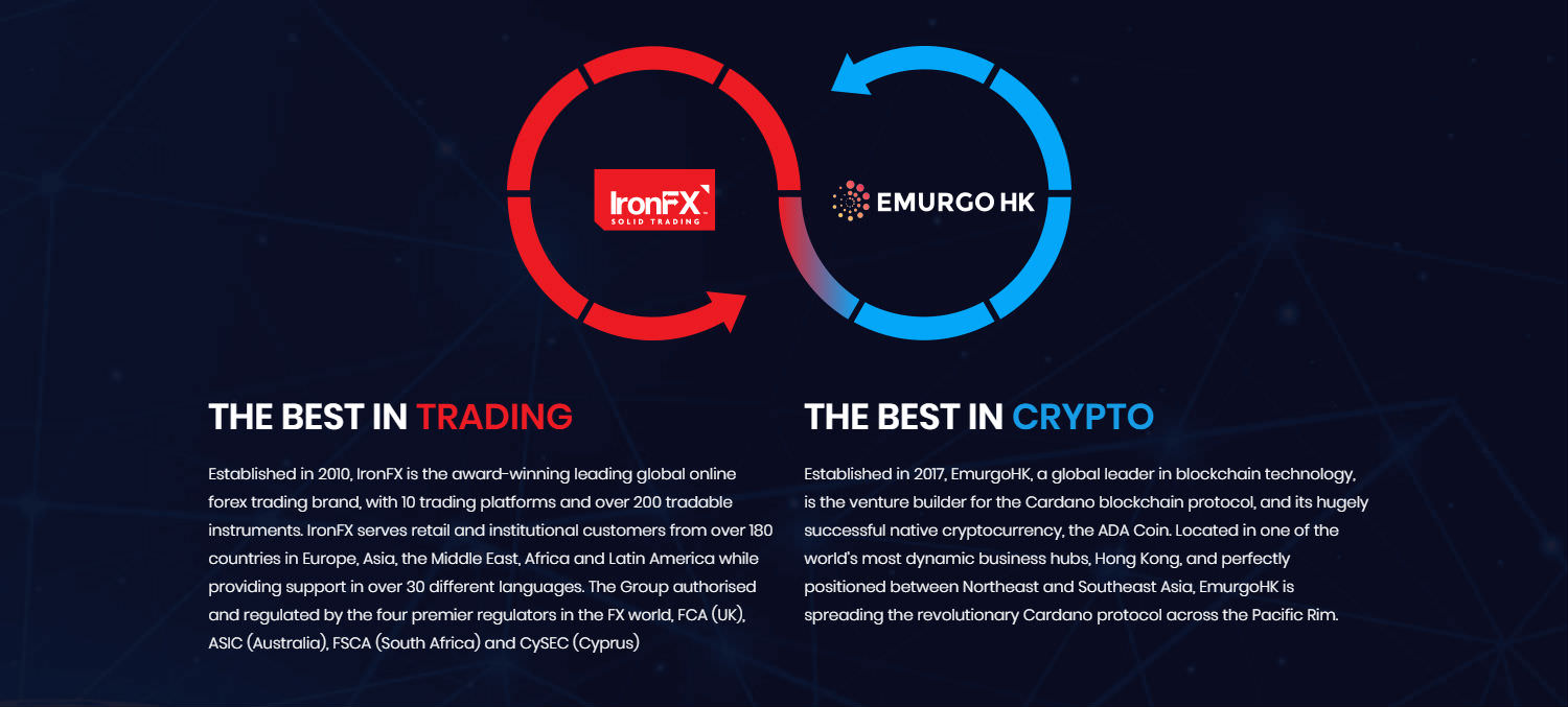 IronX borsası IronFX Group ve EmurgoHK'nın birleşmesiyle oluştu. EmurgoHK, dijital bir para olan ve yine halen ilk 20 içerisinde olan ADA'yı yani Cardano'yu yaratan şirket. Tamamen açık kaynaklı olan bu dijital parayı yaratan şirket blok zinciri teknolojileri konusunda son derece uzman ve tecrübeli bir şirket.