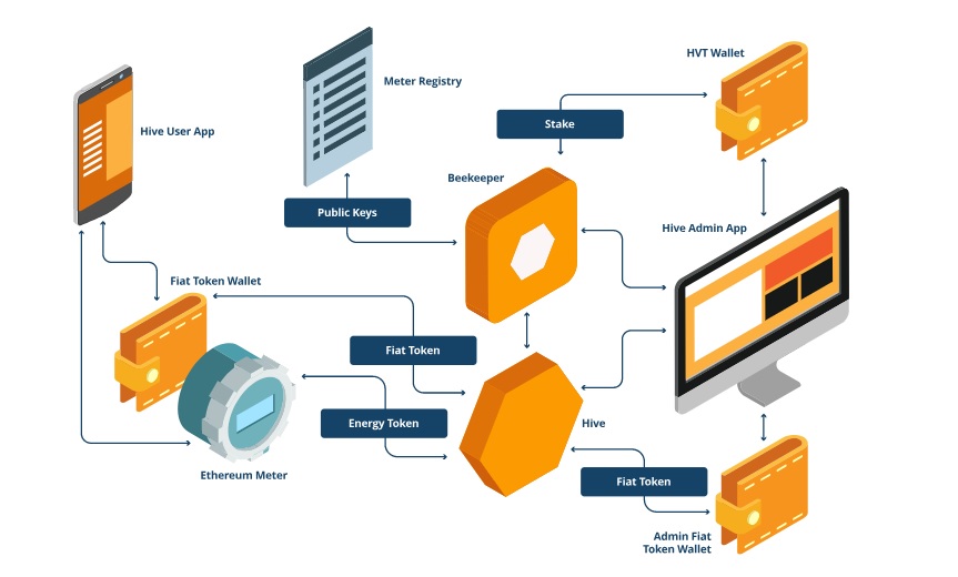 Energy Community Works The Hive Power energy ecosystem includes a distributed energy market with an exchange for energy production and consumption. The main component of the platform is the Worker. This is an electric counter, based on the Etherium, which comes with a hardware oracle. Each hive or energy grid gets its own Ethereum counter, which communicates with the energy consumer. The employee measures and ensures the conformity of energy production and consumption, allowing him to join the energy market of Hive Power.