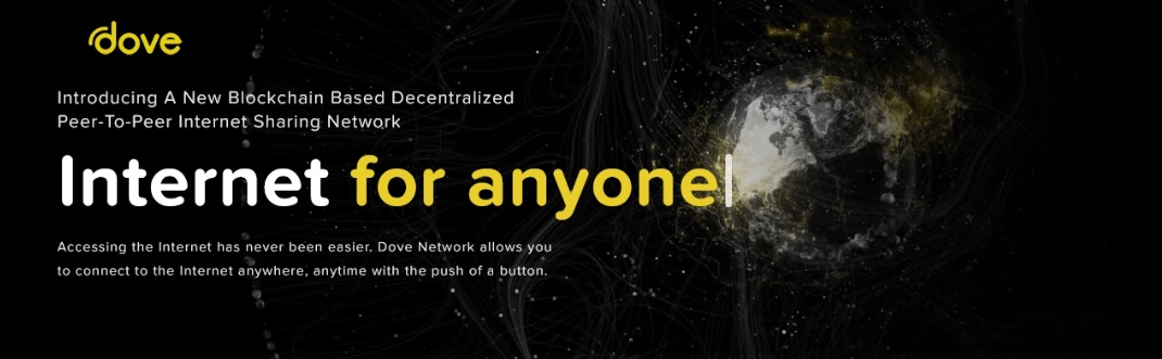 Dove Network is a peer-to-peer Internet sharing network that utilizes the Ethereum blockchain to create a mesh network of Internet Service Providers (ISPs). With Dove, every user on earth has the capability to become an ISP. This will effectively make Dove Network a global, wireless Internet provider and bring internet to billions of people who have limited to no Internet access today. We are creating a platform that will allow people and devices to connect in a one place in a peer-to-peer fashion.