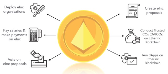 EtherInc or eCinc is designed to create decentralized applications and unique protocols for creating, managing and running organizations. The intention of this blockchain solution is to strengthen entrepreneurs around the globe to build and operate decentralized companies from the constraints of cost and distance. This collaborative approach will help add more value to the product and increase the company's trust and flexibility. EtherInc aims to be accessible worldwide to entrepreneurs wherever they need this essential service.