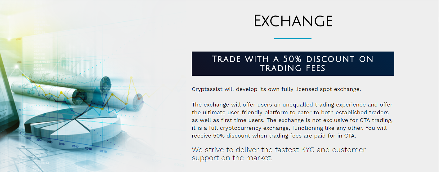 Fully licensed cryptocurrency spot exchange with 50% discount on trading fees using CTA coins, it would allow fiat and cryptocurrency deposits & withdrawals with high level security and User-friendly interface. This is a good opportunity to pay less for more value and also make profits for medium and long term coin hodlers.