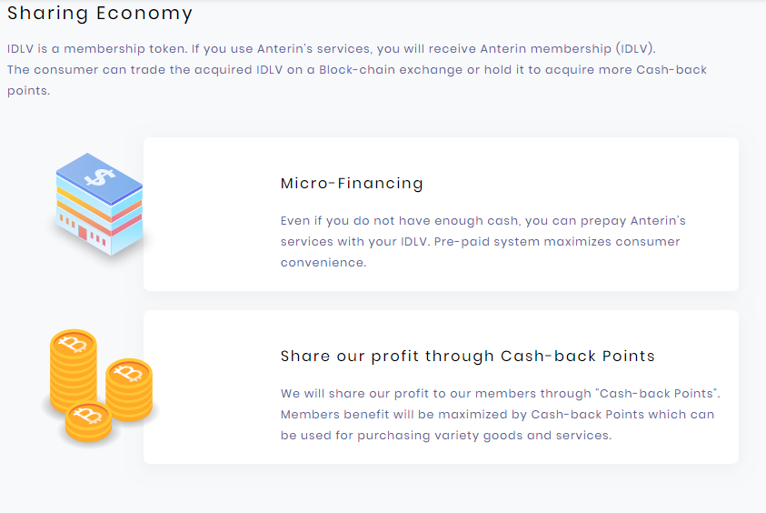 ANTERIN adalah perusahaan pemula yang menyediakan layanan pengiriman mobil dan sepeda motor premium di seluruh Indonesia. Pelanggan ANTERIN diberi IDLV karena menggunakan layanan ANTERIN. Selain itu, ada fungsi kedua penting dari token IDLV. Dengan penyebaran smartphone yang cepat, berbagi informasi pribadi dan kehidupan sehari-hari secara alami mengarah ke kehidupan kita.