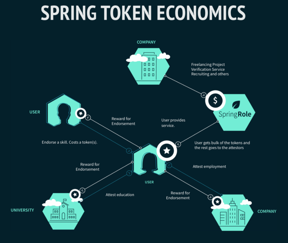The above picture is from the SpringRole whitepaper and it seeks to capture the Spring Token Economics.