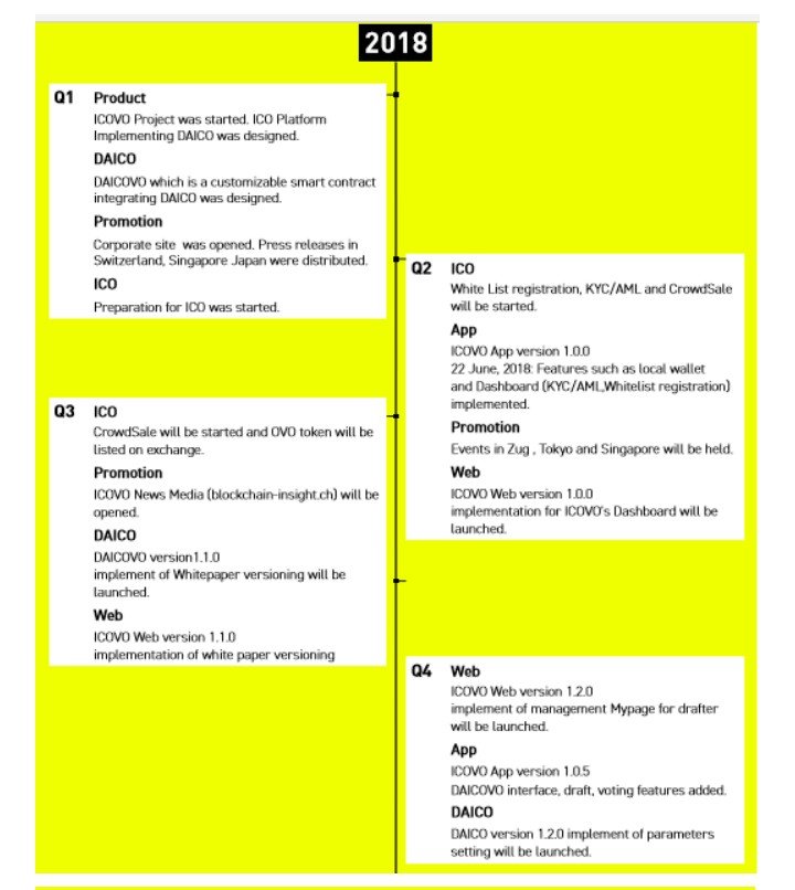 ICOVO - это первый проект в криптопространстве, который повышает осведомлённость по поводу мошеннических ICO. В январе 2018 года Виталий Бутерин, который является главным сторонником Эфириума, стимулировал создание ICOVO. В то время DAICOVO превратилась в администрацию и зависит от концепции DAICO, ICOVO будет заниматься вопросом вымогательства и снижения предложения по проекту через децентрализованную структуру DAICO (https://icovo.co).