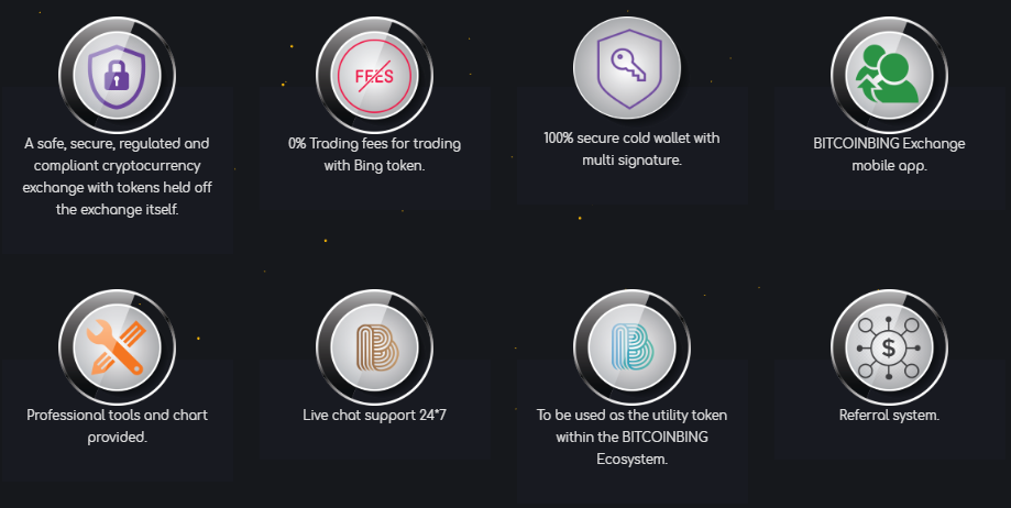 Este proyecto está enfocado en optimizar el comercio con la inducción de criptomoneda y blockchain. Es un esfuerzo por convertir al mundo en un sistema seguro y confiable. Bitcoinbing asegurará los intereses de sus usuarios en todos los aspectos. Su lema es facilitar la forma en que las personas realizan sus transacciones hoy. Con una arquitectura de igual a igual, esta plataforma neutralizará el beneficio para cada usuario.