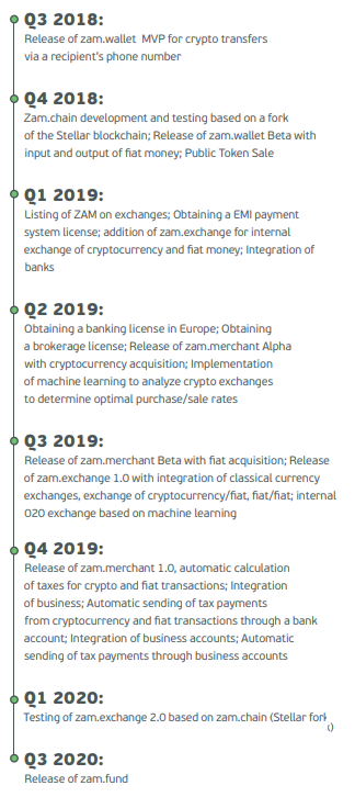 ZAM Token es la moneda interna de la cadena de bloques de ZamZam Bank, que se utiliza para pagar comisiones por transferencias de dinero, compra de productos bancarios de ZamZam, tokenZAM es el token estándar ERC-20. Los tokens se publican en el volumen indicado anteriormente, no se proporciona el lanzamiento de tokens adicionales.