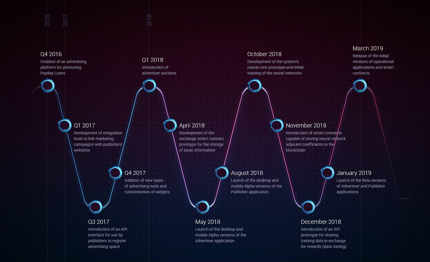 The platform is constructed on the grounds of blockchain technology by means of smart contracts and neural networks. Also there's a bonus system while buying. The incentive process is built in such way it is advantageous to get tokens ahead of time. In fact, the technological section of an advertising system connected to the publishing world is pretty intricate and involves several layers and channels that all participants apply to to be able to target their audiences.