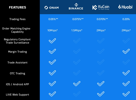 "ONAM introduces a fully compliant platform, committed to their mission — led by professionals that are ready to take crypto exchanges out of murky waters of non compliance and welcome mass adoption. By launching the ONAM exchange, the team wants to resolve the shortcomings and other issues our competitors are facing and create scalable, and transparent exchange that’s able to handle future mass adoption."