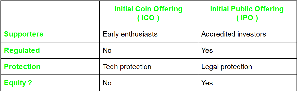 Here you can take a look at the main differences between an ICO and IPO: