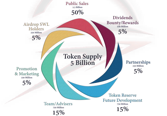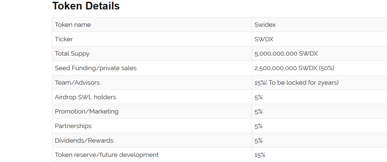 Seed Funding/private sales: 2,500,000,000 SWDX (50%)