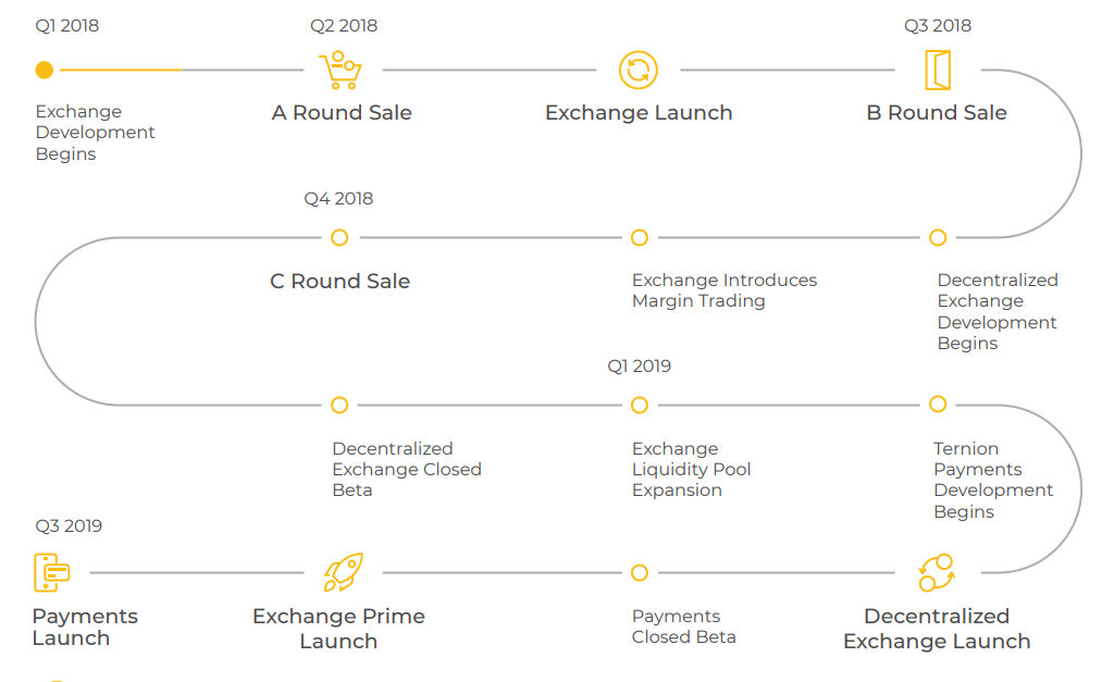 Работая над экосистемой Терниона, наша основная задача - сократить время, теряемое между основными этапами, и предоставить вкладчикам доступ к экосистеме Терниона сразу после публичной продажи. Это даст нам решающее преимущество против конкурентов, которые, как правило, погрязли в длительных сроках доставки после ICO. Следующая дорожная карта включает в себя все основные этапы развития экосистемы Терниона.