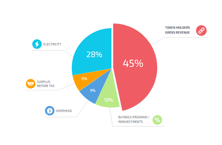 Участники проекта и инвесторы всегда могут увидеть сколько компания "намайнила" криптовалюты за месяц, это будет отображаться в статистических данных приложения – всё прозрачно, доступно и открыто.