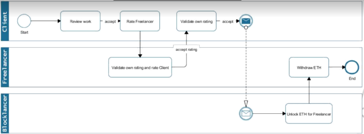 Blocklancer реализует широкий спектр процессов. Существует процесс предлагая работу, подать заявку на работу, сделать обзор и держатель токена Трибунала.