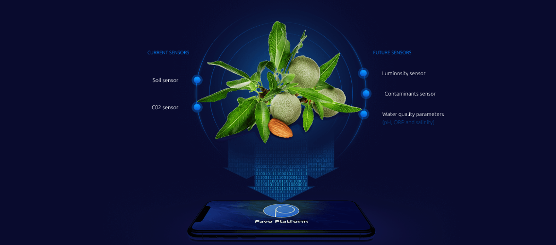 The Pavo team has vast expirience building traditional monitoring systems for almonds, hazelnuts and walnuts for the European market. Our present IoT solution for agriculture was developed in early 2017 and deployed later in the same year. This year, we're launching the Pavo cryptocurrency based on the blockchain Ethereum ERC20 standard as the next step in developing the project.