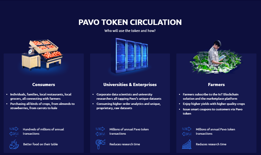 Token PAVO allows farmers, manufacturers, wholesalers, retailers, and service providers in our network to receive digital payments from customers and members of their communities. It is therefore built on blockchain technology, product quality, supply chain activity and all transparent transactions across ecosystems.