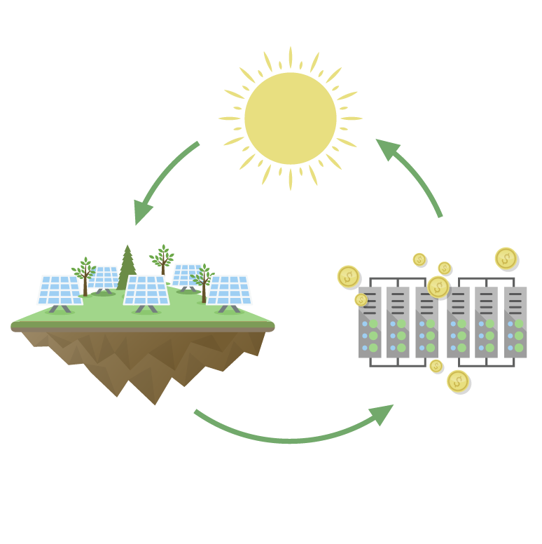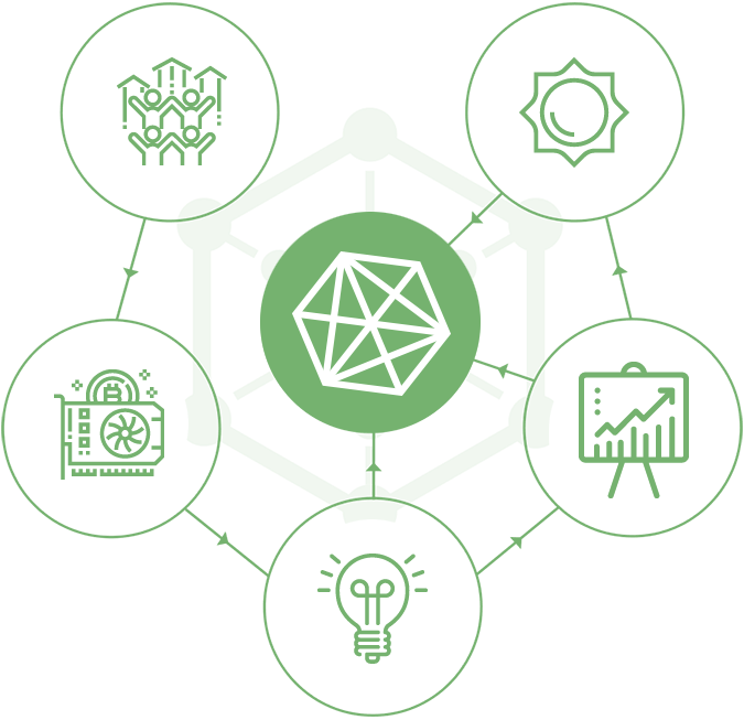 광산 농장에서 장비를 작동시키는 데 필요한 에너지는 세비야 (스페인)에 설치된 다수의 태양 광 발전소에 의해 생성됩니다. 이 발전소에서 발생한 수익은 팜이 전기를 이용하여이를 이용하도록 보장하기 위해 사용될 것입니다. 카드 소지자는 광산에서 자신의 포트폴리오를 컴파일 어떤 마이닝 알고리즘을 임대하여 광산 프로젝트 CryptoSolarTech에 참여할 수있는 권한이있는 유일한 사람들이다.