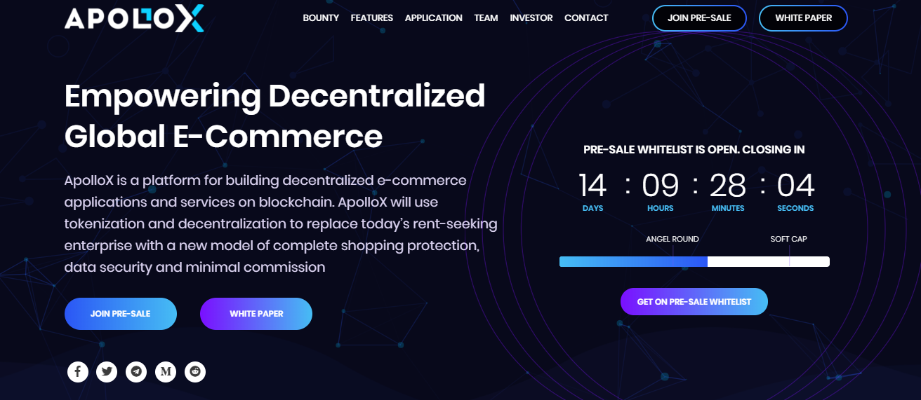 Giao thức ApolloX là tiêu chuẩn để trao quyền cho một thế hệ mới của thương mại điện tử toàn cầu phi tập trung. ApolloX đã huy động được hơn 2 triệu đô la từ các thủ đô đầu tư mạo hiểm trong ngành.