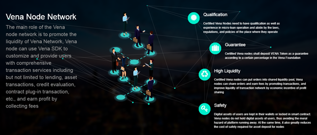 The Vena Network houses thousands of nodes worldwide where transactions are being facilitated. Through the interconnection of such nodes, Vena Network can process P2P lending and OTC trading anytime, anywhere around the world.