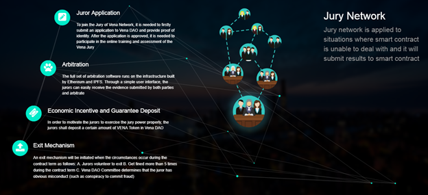 Vena also has a Jury Network that works when disputes can no longer be solved and addressed using Smart Contracts.