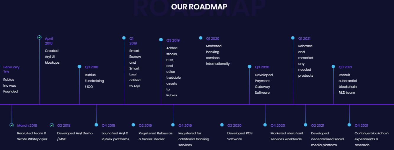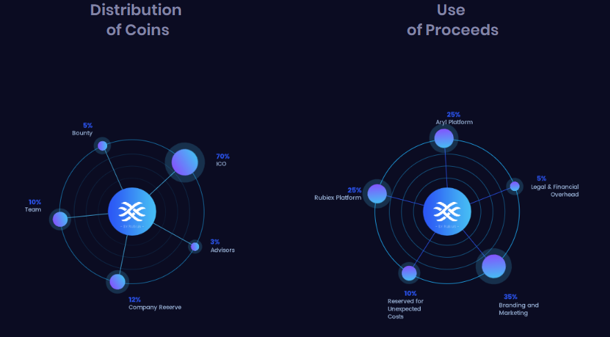 Rubius is a startup tool used to develop Aryl, a usable software, and payment platform. Aryl allows users to send, receive, or request payments in the currency of their choice. This includes a decentralized Ethereum wallet, which supports thousands of cryptocurrencies. Aryl can be used with Ethereum which can provide and allow users to access their centralized crypto called Rubiex, where they can buy, sell, and trade selected cryptocurrency currencies. Aryl is basically Venmo of cryptocurrency, as it also includes aspects of social media, which allow users to connect with friends directly in the app. But, it also gives freedom of privacy for those who prefer anonymity. To finance the development of Aryl applications and Rubiex exchange, we have ICO (initial coin offering). they offer their own cryptocurrency called Rubius (ticker symbol: RUBY). RUBY is a decentralized cryptocurrency operating on the Ethereum smart scripting platform (scripting).