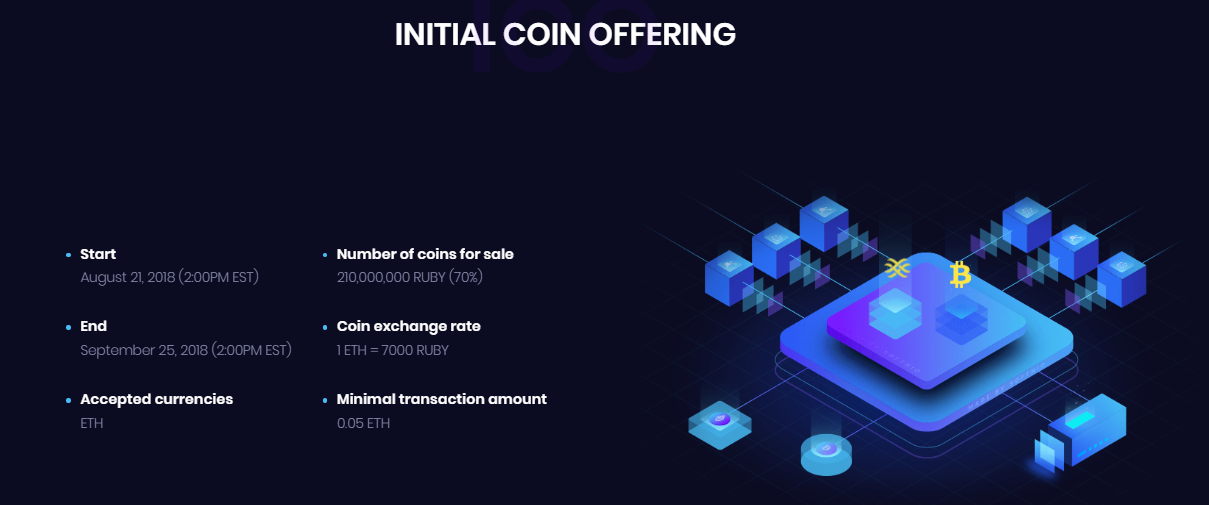 We have dedicated 70% of all Rubius coins to our initial coin offering. Our Pre-ICO will begin on July 31st and last for two weeks. The main sale for our ICO will start at 2:00pm EST on August 21st, 2018. The ICO will consist of three phases, spanning across five weeks (or until all tokens have sold). After the end of each phase, the price will increase, so we recommend participants get their RUBYs early.