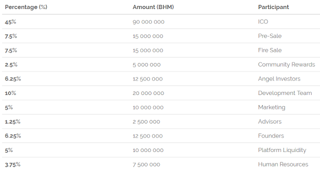 Every three months, our BHM team will use a portion of our profits to repurchase the BHM tokens that will be destroyed. This will continue up to 50% of all BHM coins destroyed, leaving (100 000 000) distributing coins