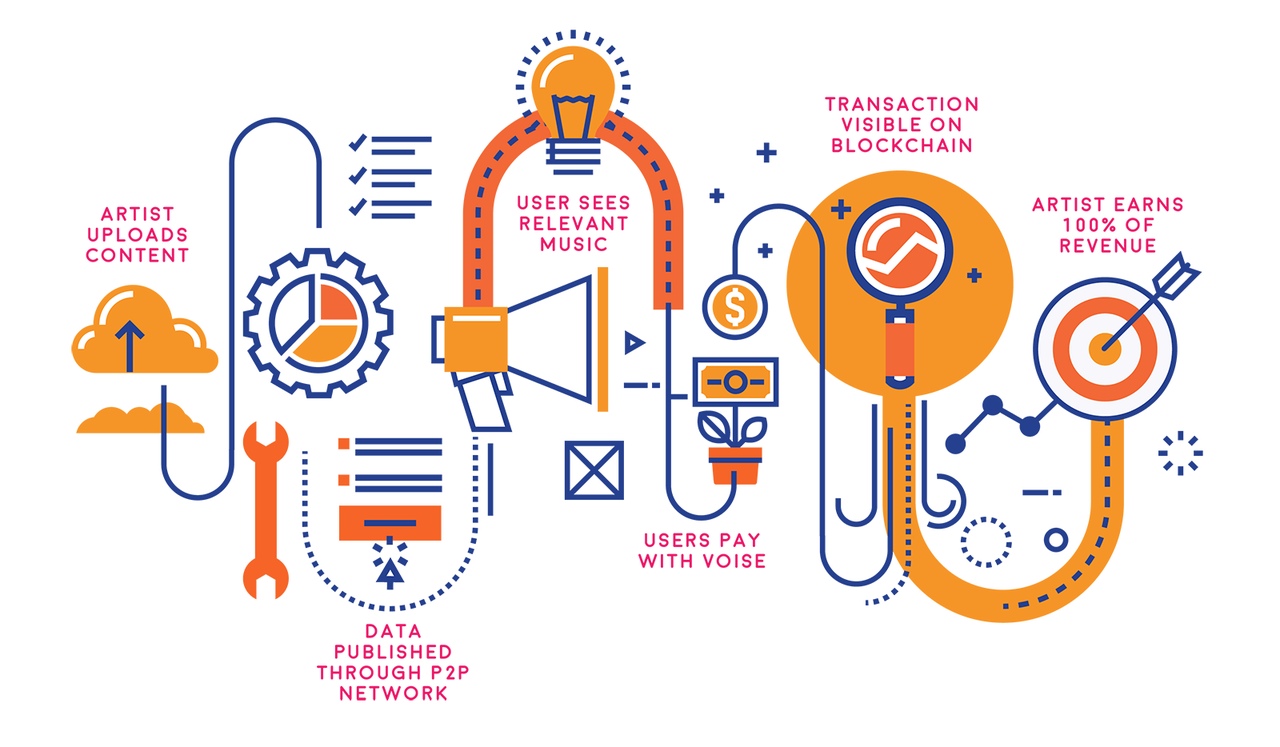 Децентрализованная площадка Voise - это место для музыкантов и любителей хорошей музыки, без посредников: только музыка и слушатели. Возможность контакта напрямую, без посредников, в разы увеличивает доходы музыкантов.