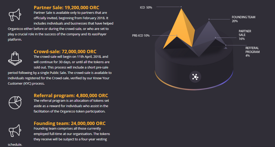 The ICO will be based on a fixed number of Organicco tokens, which will be sold via the website. They will be provided in exchange for your investments, so the whole process will look like buying shares. They can be traded on crypto-exchange exchanges starting from the end of the first quarter of 2019