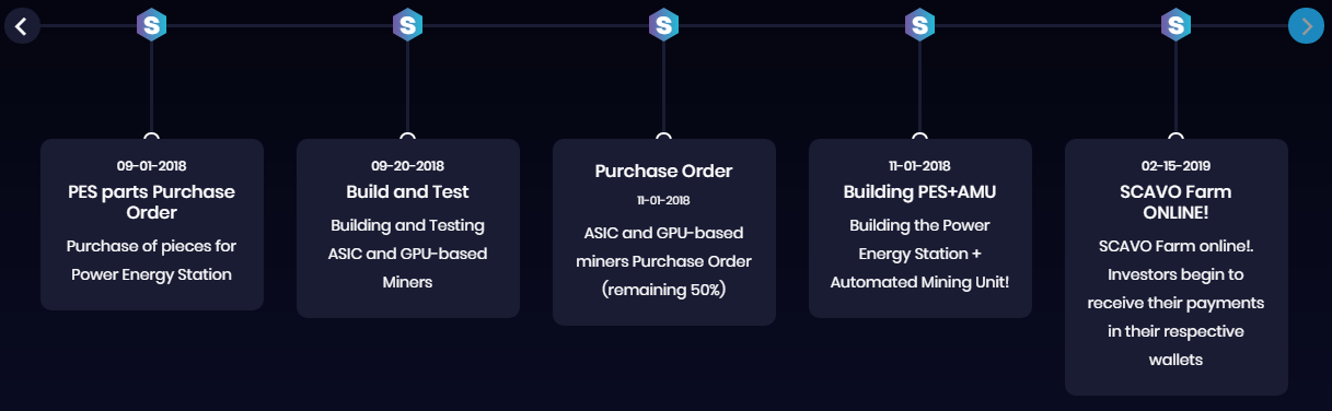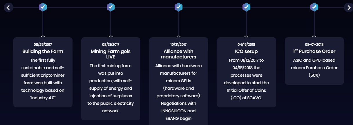 SCAVO project aims at the construction and management of large-scale self-sustaining crypto-mining farms. The funds raised during the ICO will be mainly allocated to the construction of the mining farms and their power plants to fully supply their energy consumption. Once energy independence has been achieved, the income generated by the mining farms will cover all maintenance costs and regularly generate additional income.