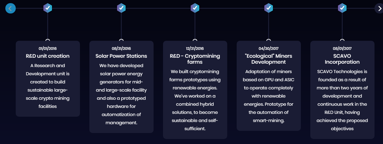 SCAVO's technology is based on commercial model SCAVO Token. Each Token SCAVO was acquired by investors will represent the right to receive benefits from all that is produced by agriculture mining for life (as long as it is the holder of a Token), understood as a period in which the benefits exceed the costs the operations required to maintain in the farming operation. Technology developed by technology SCAVO and third parties will be used to build standalone and scalable mining center that uses renewable resources for power generation. SCAVO technology will finance the construction of the entire system that forms the center of mining through crowdfunding by distributing token SCAVO, during the early coins offer (ICO).