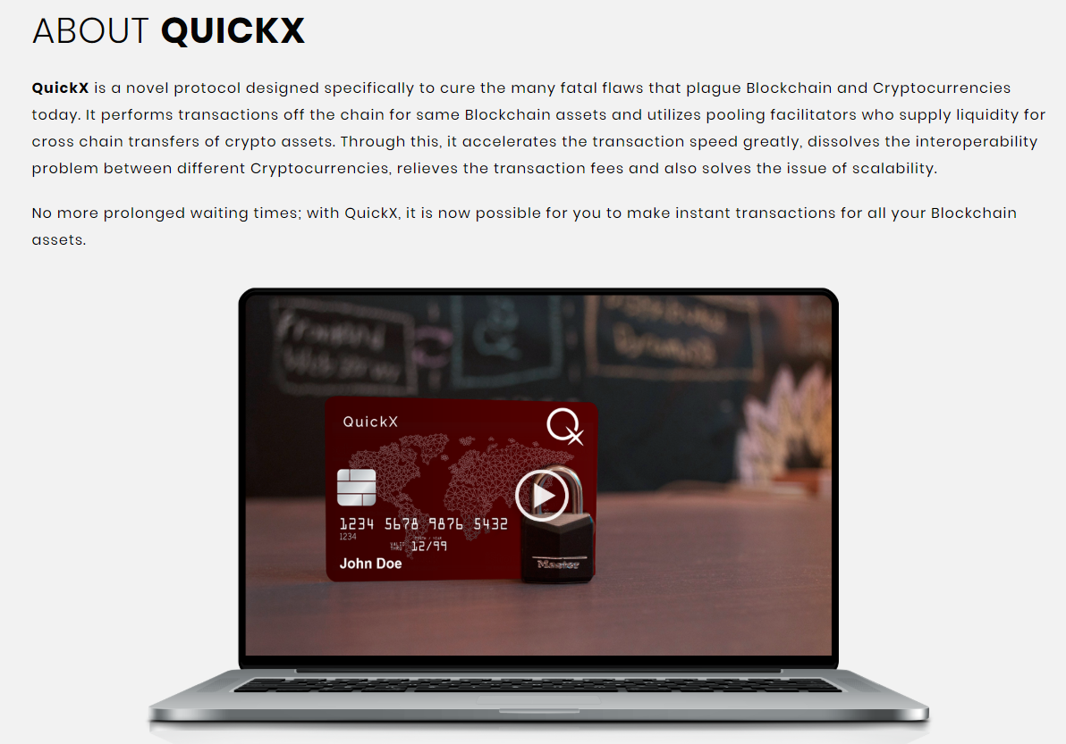 Traditional payment systems are characterized by an abundance of problems - security, high commission, problems with the speed of the required transaction. That is why there are projects based on the blockchain. The QuickX decentralized platform is a unique solution that will be an ideal trading platform. Here, each user will be able to exchange their cryptocurrency as quickly as possible.