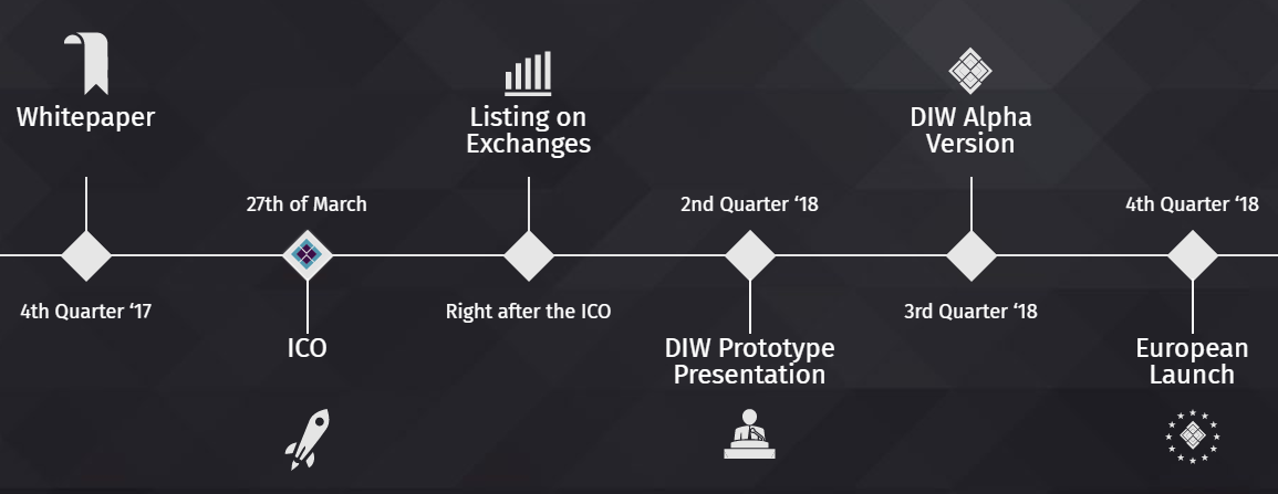 DIW’s unique concept plans to solve global security vulnerabilities in regards to private sensitive data including ID Documentation, Bank and Login details, Wills and Healthcare records to name a few with the introduction of a Secure Digital Vault. Additionally, it will enhance the use of crypto currencies by developing a check-out system accepting all major fiat and crypto currencies, easily integratable on thousands of websites. Furthermore, it will introduce a fully transparent, trusted, global directory featuring a rating system where organisations and individuals alike will be able to do business swiftly, securely and with full confidence. The DIW Token will be the preferred method of payment throughout the DIW network.