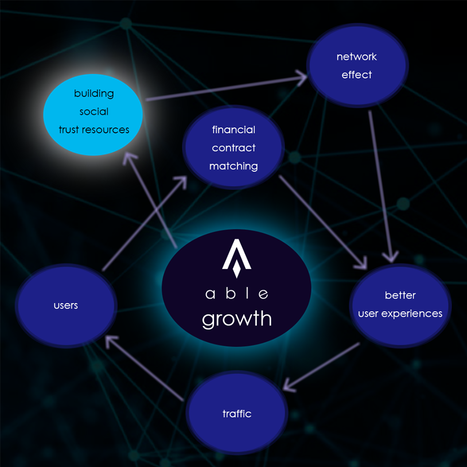 Проект ABLE направлен на создание бизнес-экосистемы, которая может быть признана всеми на основе надежности и открытости Blockchain. Это не только создаст глобальный бизнес, который не ограничивается территориальными границами, но также будет способствовать устранению неравенства между богатыми и бедными группами населения в мировом пространстве.
