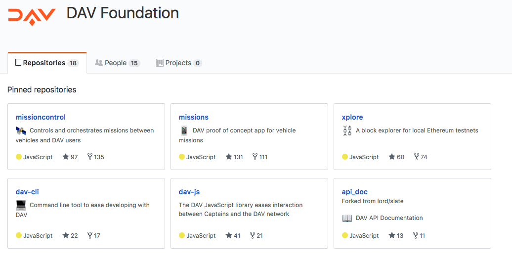 DAV foundation has set up 18 GitHub repos. This includes the Website, Token Sale Smart Contracts, Libraries and Proof-of-Concept demos. The one repo that I found particularly interesting is Missions.