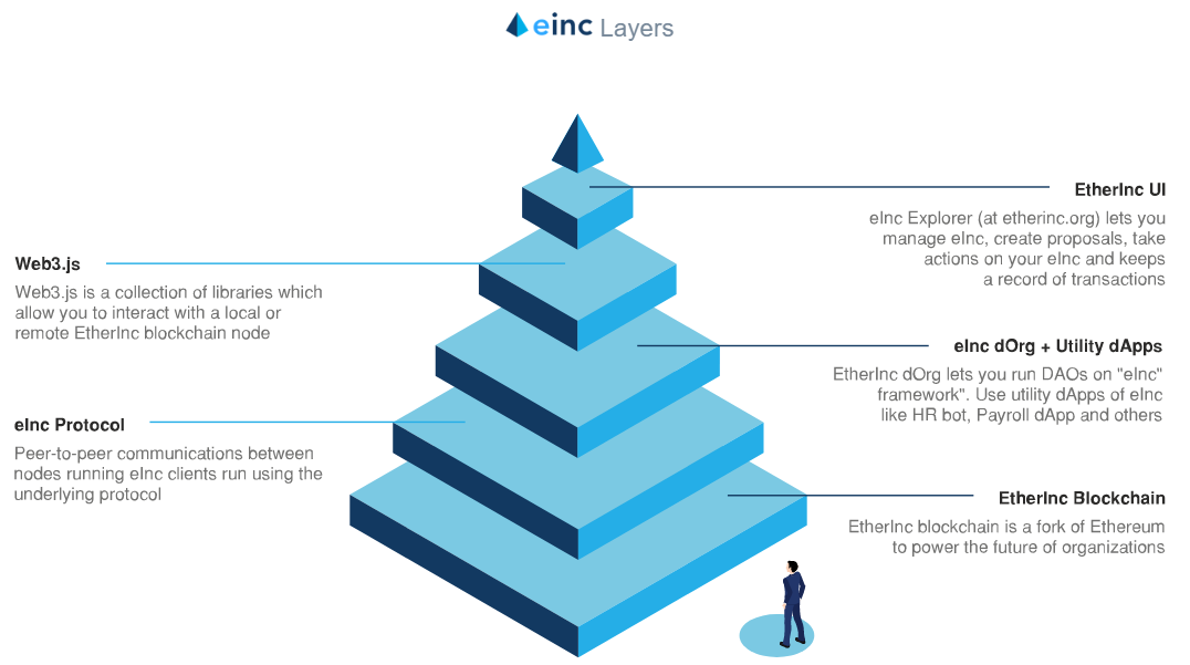 EtherInc или einc предназначены для создания уникального протокола для создания, управления и запуска децентрализованных приложений и организаций.