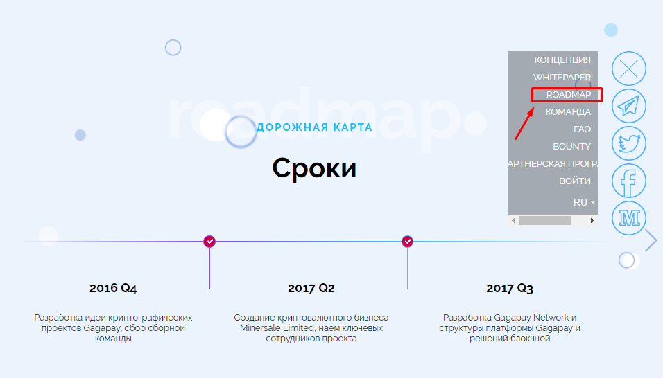 Дорожную карту проекта можно посмотреть, войдя в соответствующее меню на сайте: