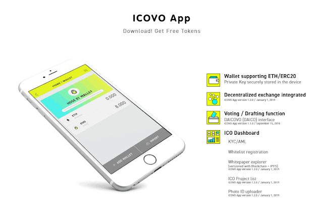 The wallet provided by the ICOVO project we can use to store and send OVO, Ethereum and standard tokens based on ERC-20, as Decentralization of Exchange or what we usually call DEX, Voting / Drafting functions, and ICO Dashboards. Like this example ICOVO App