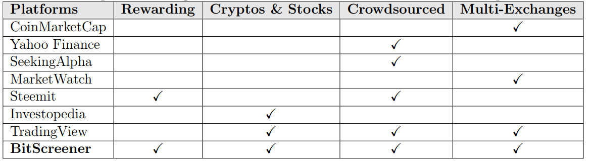 Главным отличие проекта BitScreener ото всех других ныне существующих является наличие более качественного и узконаправленного контента, направленного на конкретную группу людей, владеющих знаниями о криптовалютном рынке.