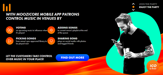 Moozicore пропонує вам можливість замовити пісню, яку ви хотіли б послухати в певному місці, наприклад, в кафе або в закладі швидкого харчування. Звичайно, що ви не станете постійним клієнтом того закладу, де вам некомфортно або воно не припадає до вашого смаку. Навіщо шукати ідеальне місце, коли ви дійсно можете зробити будь-яке місце ідеальним, використовуючи тільки свій смартфон? Завдяки розвитку проекту, кожен зможе побачити локації, які працюють з Moozicore.