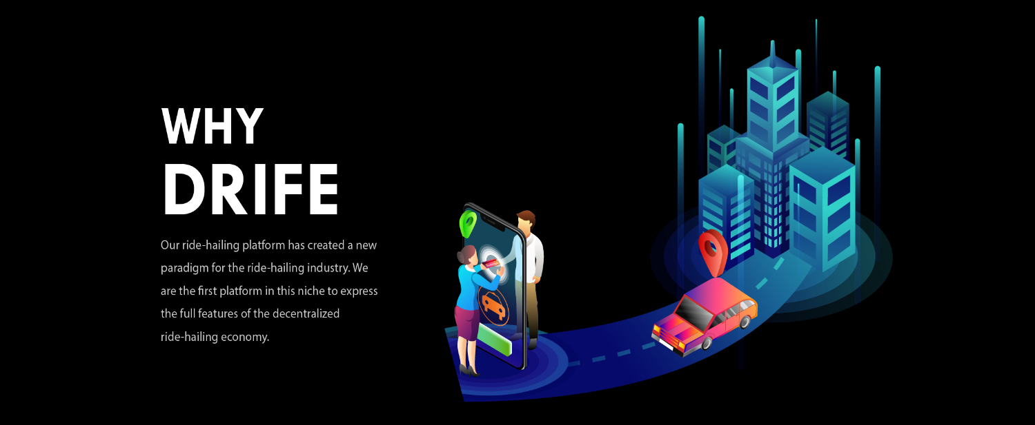 DRIFE is a decentralized ride-hailing platform powered by blockchain with the intent of empowering value creators and extractors within our ecosystem – these include the drivers, Commuters, and developers community. DRIFE plans to disrupt the existing business model and remove the corporate intermediaries involved in the transactions.