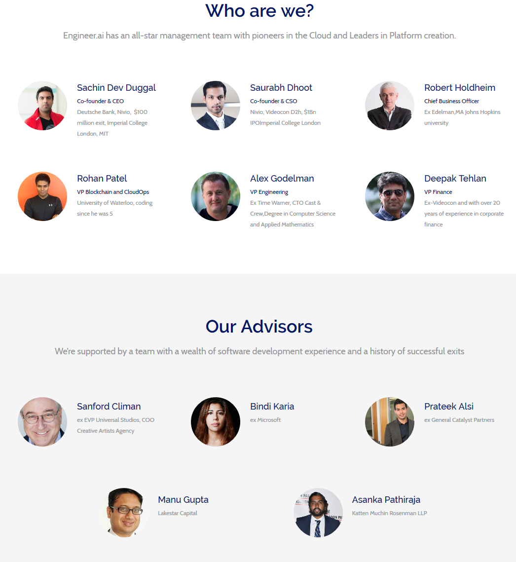 Engineer.ai is a blockchain and human-assisted artificial platform to make building bespoke software accessible for everyone. Our blockchain and AI-powered solution allow clients and creators to complete their projects with a higher success rate, more cost-effectively, and with shorter production timelines than the current consultation and iteration model.