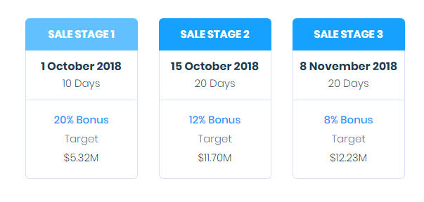 Ethereum will be accepted as payment during the ICO. The token sales details are as follows: