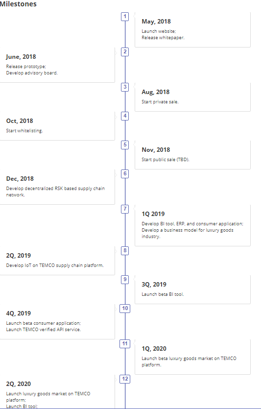 When the ICO is finished up, we can hope to observe the arrival of the store network arrange in mid 2019. Beginning starting here, TEMCO will bit by bit build up its diverse instruments like a Business Insights apparatus, an IoT work, a shopper application and even an extravagance merchandise arrangement.