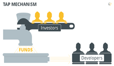 Tap Mechansim은 기술적으로 Tap이라는 1초당 출금 가능한 암호화폐(이더리움)의 양을 정해놓고 투자자들의 투표를 통해 Tap값을 조정하게 함으로써 사기 ICO를 막는 것이며, 투자자들이 사기 ICO라고 생각되어 컨트랙을 파괴할 경우 남은 암호화폐는 모든 토큰 보유자들에게 보유 비율만큼 나누어주도록 설계되었습니다.