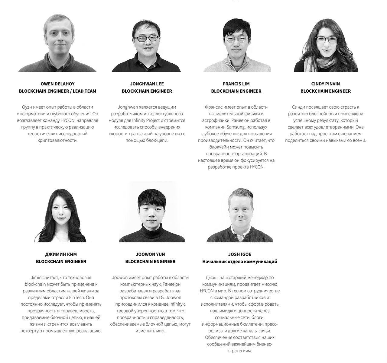 Программисты: Ниал Мур (известный специалист в блокчейн-сообществе), Фрэнсис Лим, Оуэн Делахой, Джонгван Ли, Синди Пинвин.