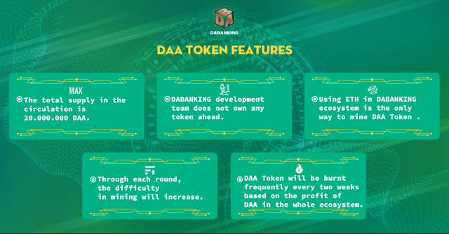 DAB Tokens is the token of infrastructure of the Dabanking ecosystem, based on the ethereum based. With a total supply of 200,000,000 tokens and a special metholdology of obtaining them, which can only be through the mining wallet.