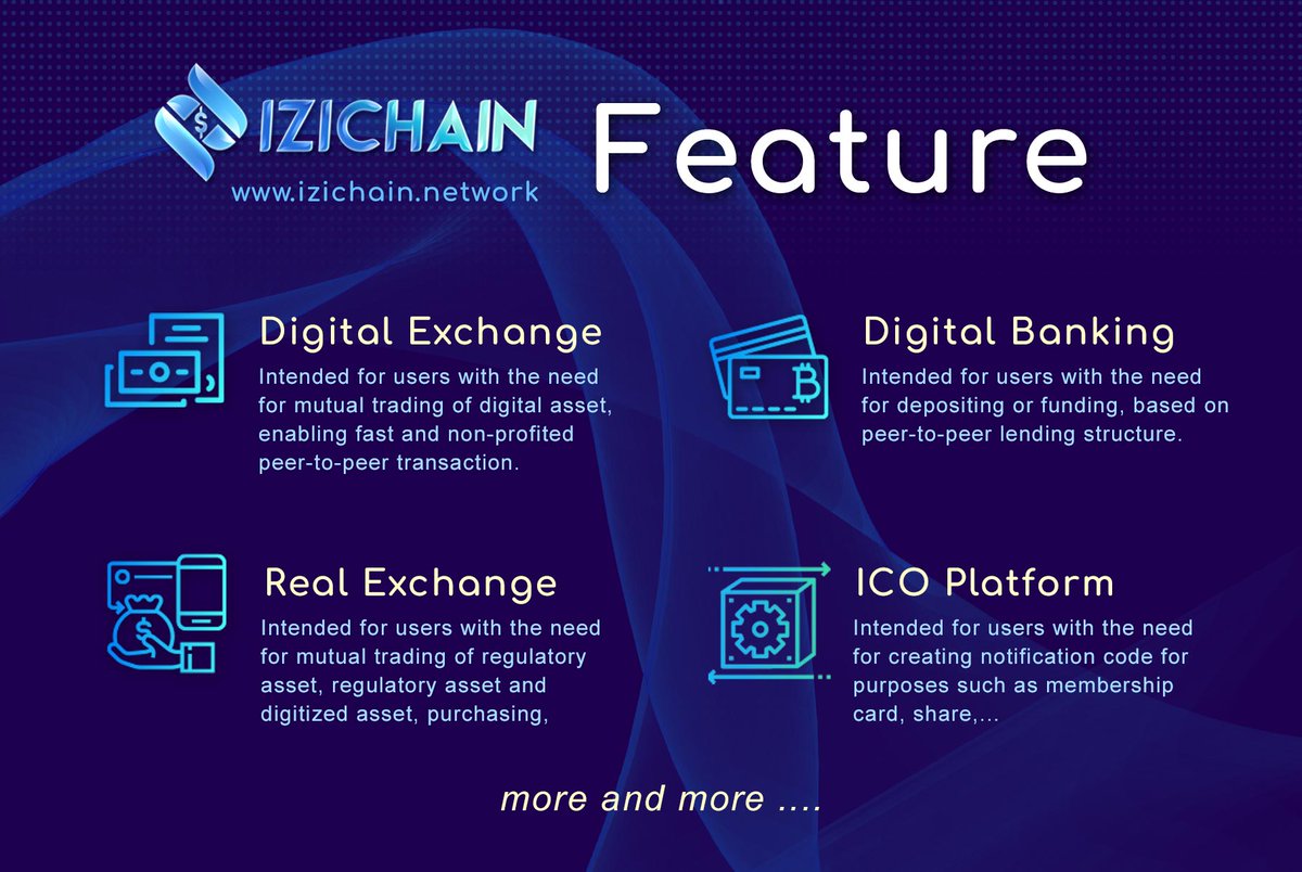 IZIChain là một nền tảng blockchain lai công cộng toàn cầu nhằm mục đích cách mạng hóa thị trường tài chính hoạt động bằng cách số hóa tài sản tài chính và thị trường thực tế như thế nào. IZIChain sẽ cung cấp cho người dùng các kết nối vốn và giải pháp tùy chỉnh cho thị trường tài chính với các ứng dụng xã hội và thực tế.