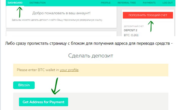 Далее вам предстоит пополнить баланс своего кабинета на сумму не менее 0,07 BTC (актуальный курс Биткойна можно посмотреть, например, в coinmarketcap ). Для этого нужно перейти во вкладку DashBoard и нажать на кнопку "Пополнить текущий счет".